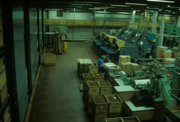 Fabrikkinteriør. Produksjon av tobakk hos Tiedemanns Tobaksfabrik på Hovin. Fra billedserie laget i forbindelse med Tiedemanns interne tobakkskurs.