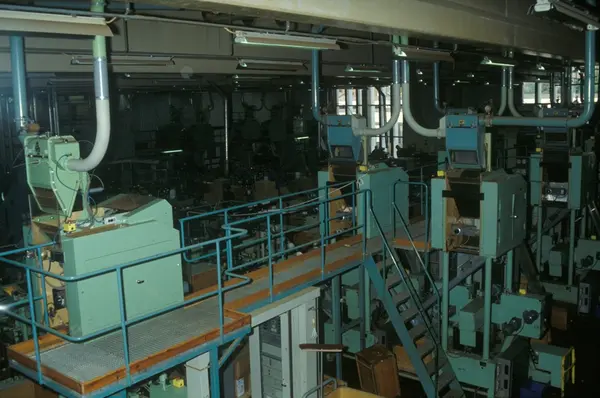 Fabrikkinteriør. Produksjon av tobakk hos Tiedemanns Tobaksfabrik på Hovin. Fra billedserie laget i forbindelse med Tiedemanns interne tobakkskurs.