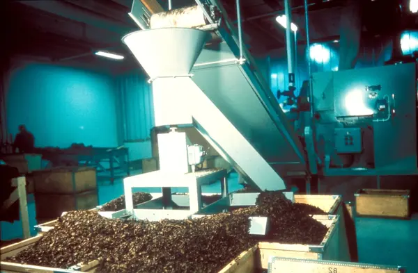 Fabrikkinteriør. Produksjon av sigarer hos Tiedemanns Tobaksfabrik.