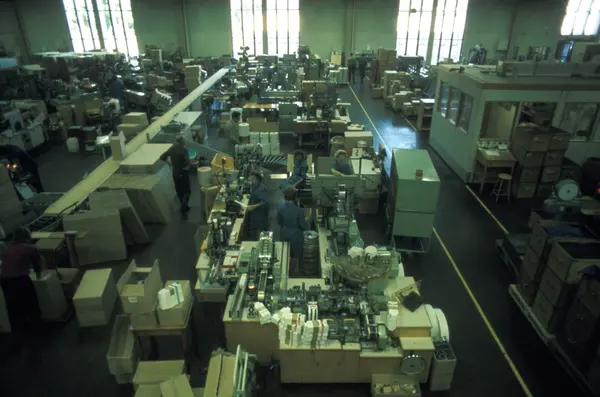 Fabrikkinteriør. Produksjon av tobakk hos Tiedemanns Tobaksfabrik. Fra billedserie til bruk ved presentasjon av Stjernesnitt sigaretter.