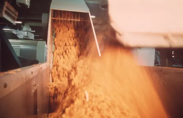 Fabrikkinteriør. H. Petterøe tobakksfabrikk, røyketobakk tilberedning. Bildeserie i forbindelse med presentasjon av Petterøes tobakk i 1970.