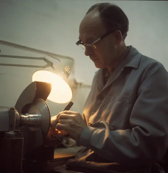 Fabrikkinteriør. Sigaravdeling. Produksjon av tobakk hos Tiedemanns Tobaksfabrik.