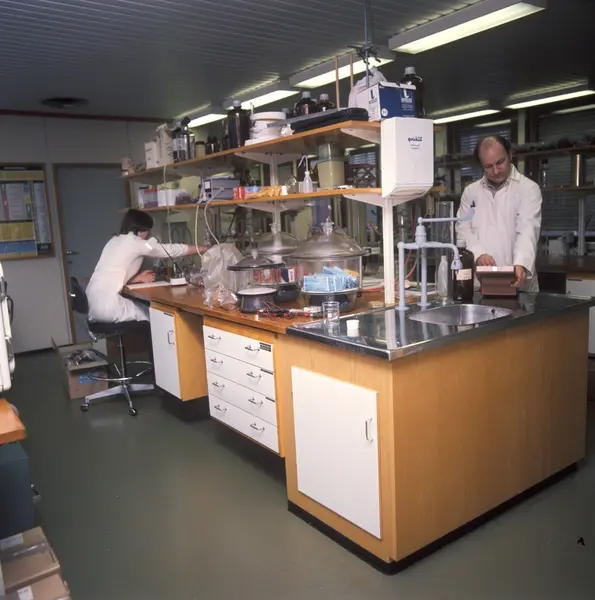 Laboratoriet hos Tiedemanns Tobaksfabrik på Hovin.