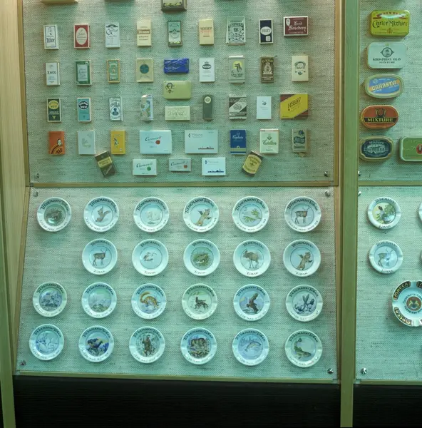 Utstilling av gjenstander fra Tiedemanns tobakks og reklamemuseum.