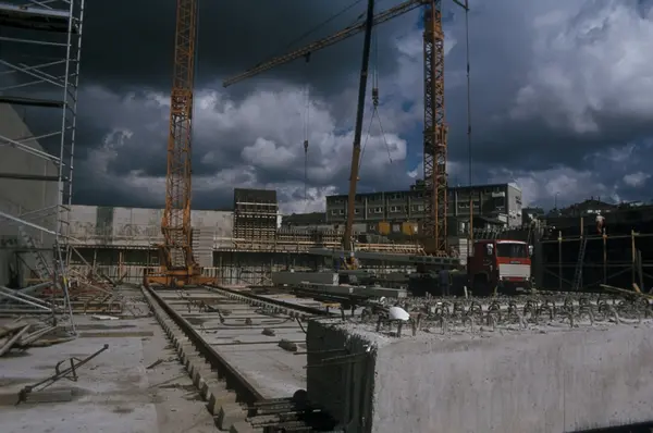 Bygningskonstruksjon hos Tiedemanns Tobaksfabrik på Hovin.