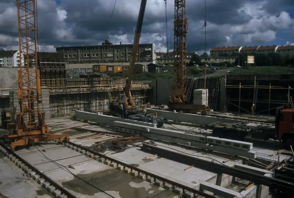 Bygningskonstruksjon hos Tiedemanns Tobaksfabrik på Hovin.