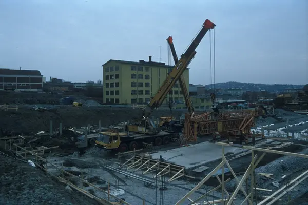 Bygningskonstruksjon hos Tiedemanns Tobaksfabrik på Hovin.