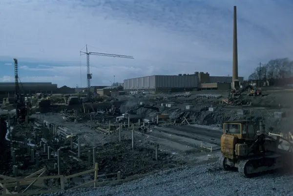 Bygningskonstruksjon hos Tiedemanns Tobaksfabrik på Hovin.