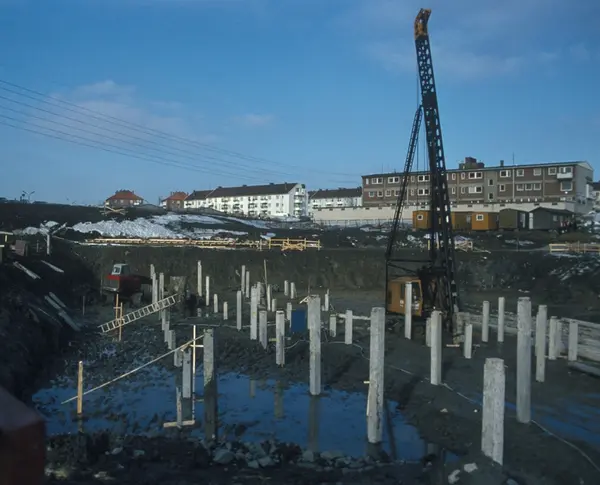 Bygningskonstruksjon hos Tiedemanns Tobaksfabrik på Hovin.