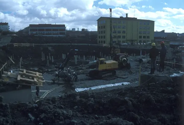 Bygningskonstruksjon hos Tiedemanns Tobaksfabrik på Hovin.