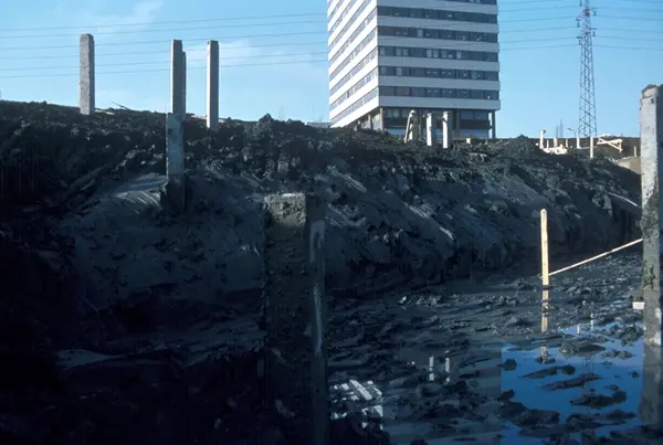 Bygningskonstruksjon hos Tiedemanns Tobaksfabrik på Hovin.