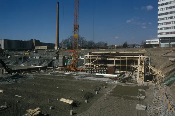 Bygningskonstruksjon hos Tiedemanns Tobaksfabrik på Hovin.