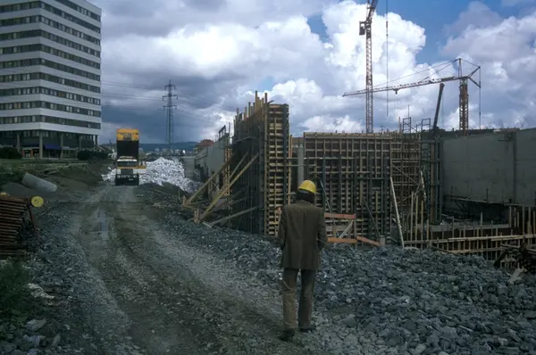 Bygningskonstruksjon hos Tiedemanns Tobaksfabrik på Hovin.