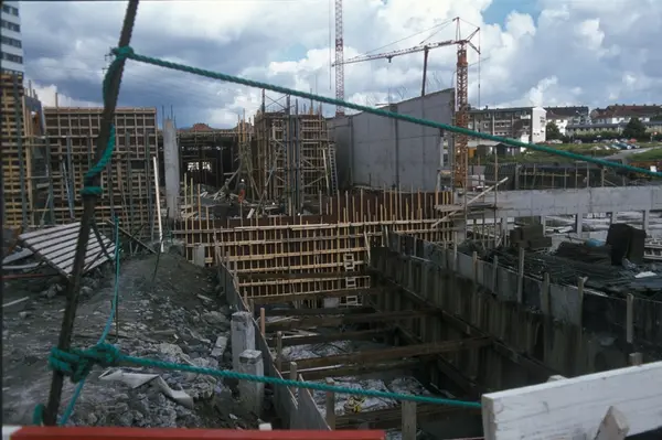 Bygningskonstruksjon hos Tiedemanns Tobaksfabrik på Hovin.