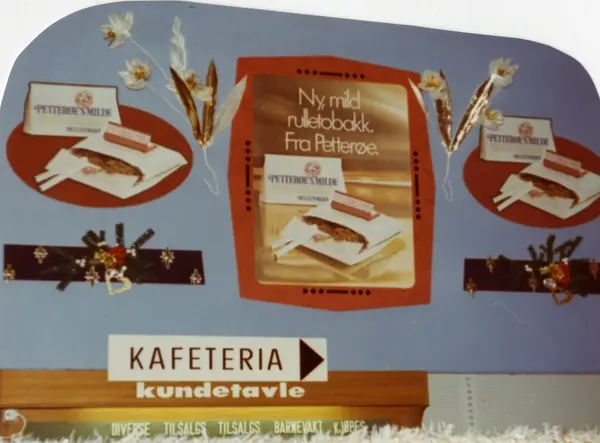 Reklame for Petterøes rulletobakk hos Manglerud Super.