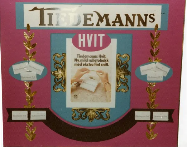Foto fra Tiedemanns reklame- og tobakksmuseum. Samlingen består av gjenstander, fotografier og arkivalia knyttet til J. L. Tiedemanns Tobaksfabrik (etablert 1778). Fabrikken var en sentral og ledende aktør innen nærings- og nytelsesmiddelindustrien, og utgjør et langt og viktig kapittel i norsk industrihistorie. Tiedemanns Tobaksfabrik la ned produksjonen i 2008, etter 230 års virksomhet. Norsk Folkemuseum overtok Tiedemanns reklame- og tobakksmuseum i 2010.