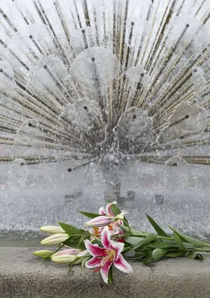 "Sorg i det offentlige rom". Blomster lagt ned ved fontenen utenfor Nationaltheatret stasjon.