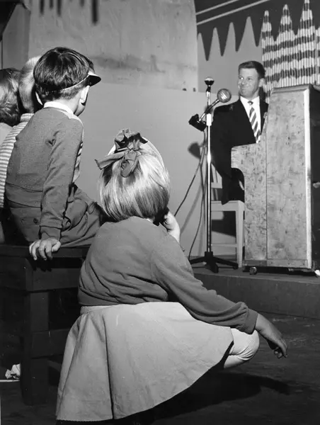 Underholdning på scenen. Familiedag hos Tiedemanns Tobaksfabrik i Stensberggate 1959.