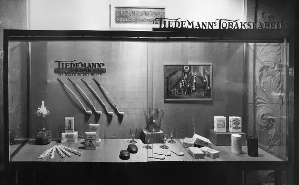 Foto fra Tiedemanns reklame- og tobakksmuseum. Samlingen består av gjenstander, fotografier og arkivalia knyttet til J. L. Tiedemanns Tobaksfabrik (etablert 1778). Fabrikken var en sentral og ledende aktør innen nærings- og nytelsesmiddelindustrien, og utgjør et langt og viktig kapittel i norsk industrihistorie. Tiedemanns Tobaksfabrik la ned produksjonen i 2008, etter 230 års virksomhet. Norsk Folkemuseum overtok Tiedemanns reklame- og tobakksmuseum i 2010.