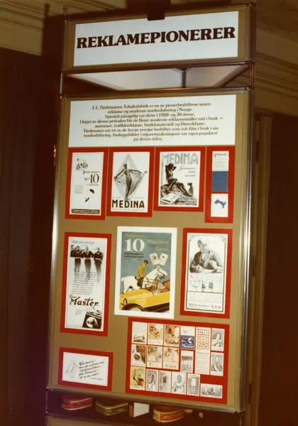Foto fra Tiedemanns reklame- og tobakksmuseum. Samlingen består av gjenstander, fotografier og arkivalia knyttet til J. L. Tiedemanns Tobaksfabrik (etablert 1778). Fabrikken var en sentral og ledende aktør innen nærings- og nytelsesmiddelindustrien, og utgjør et langt og viktig kapittel i norsk industrihistorie. Tiedemanns Tobaksfabrik la ned produksjonen i 2008, etter 230 års virksomhet. Norsk Folkemuseum overtok Tiedemanns reklame- og tobakksmuseum i 2010.