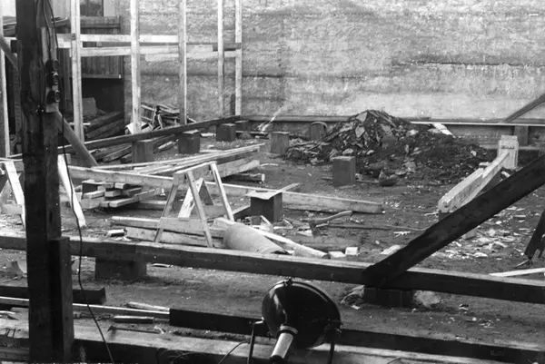 Bygging av nytt snekkerverksted hos Tiedemanns Tobaksfabrik i Stensberggate 1953.