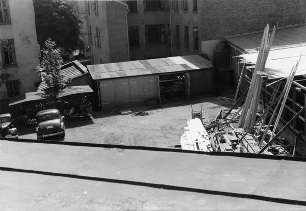 Bygging av ny kartonasjeavdeling hos Tiedemanns Tobaksfabrik i Stensberggate 1953.