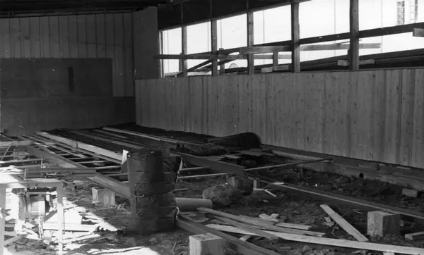 Bygging av ny kartonasjeavdeling hos Tiedemanns Tobaksfabrik i Stensberggate 1953.