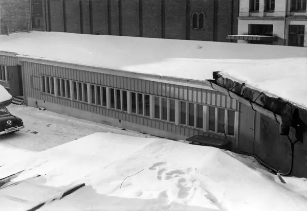 Bygging av ny kartonasjeavdeling hos Tiedemanns Tobaksfabrik i Stensberggate 1953.