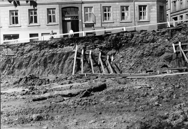 Konstruksjon av garasje og lager ved Tiedemanns Tobaksfabrik i Stensberggate i 1954.