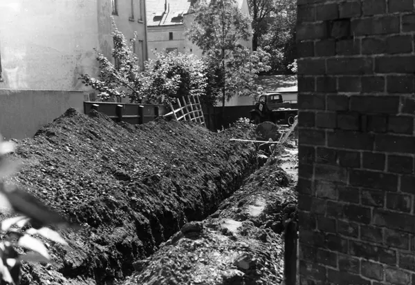 Konstruksjon av garasje og lager ved Tiedemanns Tobaksfabrik i Stensberggate i 1954.