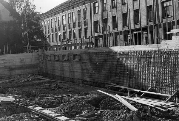Konstruksjon av garasje og lager ved Tiedemanns Tobaksfabrik i Stensberggate i 1954.