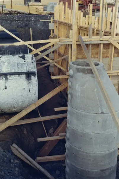 Byggeplass. Konstruksjon av Tiedemanns Tobaksfabrik på Hovin i 1969.