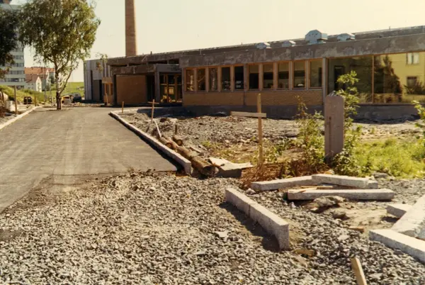 Byggeplass. Konstruksjon av Tiedemanns Tobaksfabrik på Hovin i 1969.