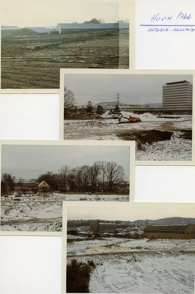 Byggeplass. Konstruksjon av Tiedemanns Tobaksfabrik på Hovin i 1966.