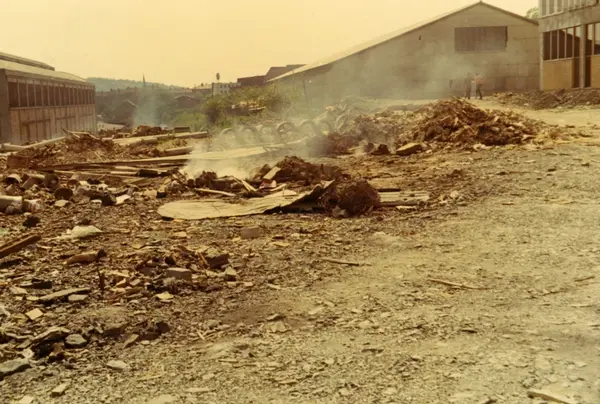Byggeplass. Konstruksjon av Tiedemanns Tobaksfabrik på Hovin i 1968.