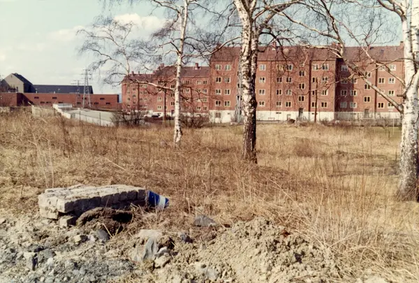 Bebyggelse rundt J. L. Tiedemanns Tobaksfabrik på Hovin. Fotografert i forbindelse med konstruksjonen av fabrikken.