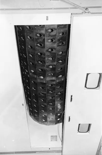 Foto tatt i løpet av en omvisning i J. L. Tiedemanns Tobaksfabriks nye anlegg på Hovin i 1969 i forbindelse med innvielsen av fabrikken.