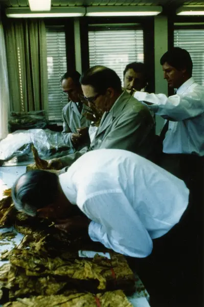 Kontroll av råtobakk på Tiedemanns fabrikk på Hovin.