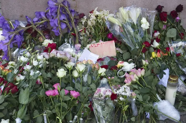 "Sorg i det offentlige rom". Blomster, lys og hilsener ved Oslo Domkirke 22.08.2011, en måned etter terrorhandlingene i Oslo og på Utøya.