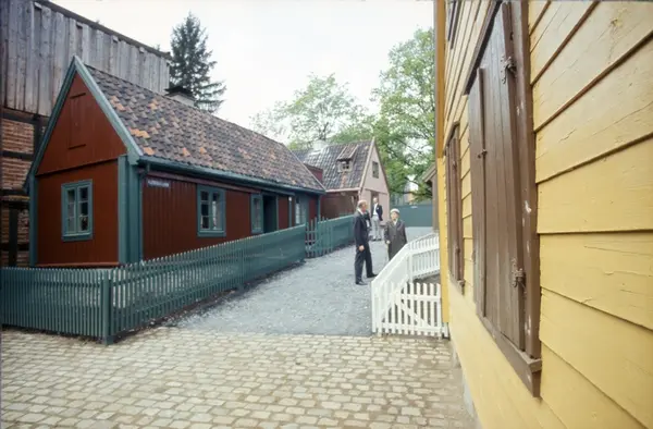 Forstadshus fra Flisberget 2 på Enerhaugen og Kanten 1B på Hammersborg. Fotografert på Norsk Folkemuseum i 1969.