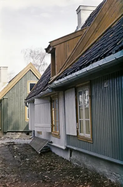 Eksteriør. Forstadshus fra Stupinngata 10 på Enerhaugen i forgrunnen. Deretter forstadshus fra Johannes gate 4 og bakerst Johannes gate 12.