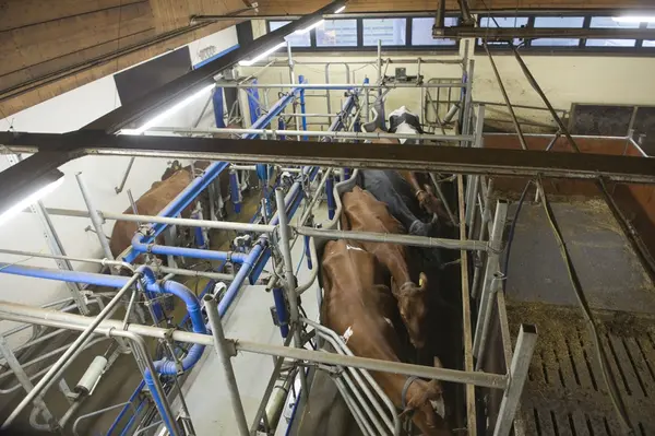 Melking i fjøset på Bygdø Kongsgård, 20. april 2012.