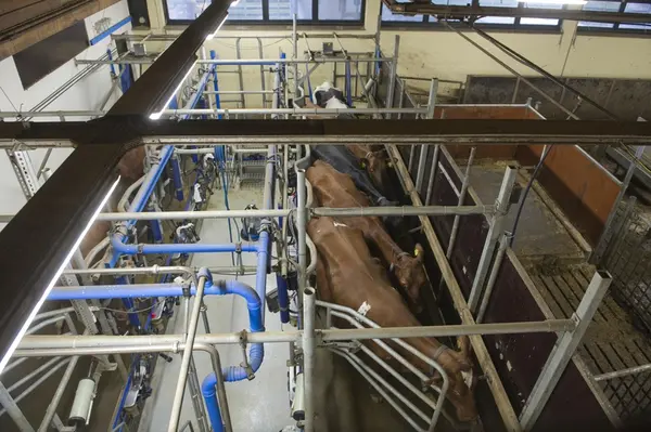 Melking i fjøset på Bygdø Kongsgård, 20. april 2012.