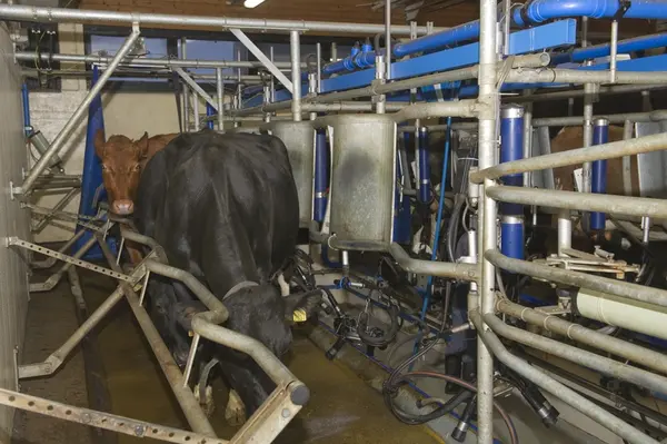 Melking i fjøset på Bygdø Kongsgård, 20. april 2012.