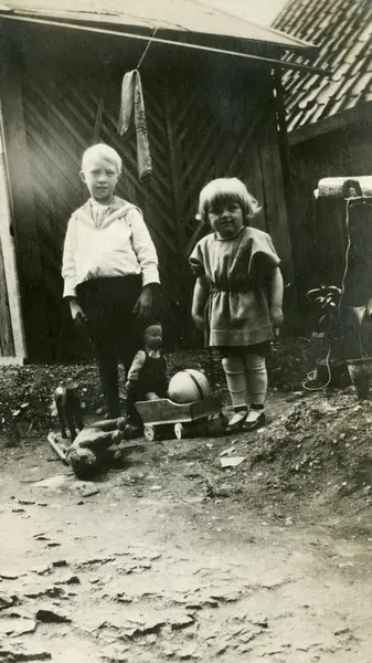 To barn i gårdsrom på Enerhaugen, 1923.