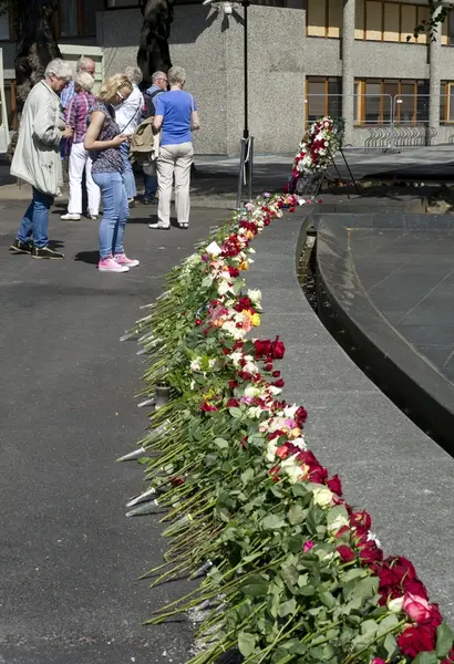 Regjeringskvartalet. Blomster og kondolanser lagt ned i Oslo sentrum i forbindelse med ettårsdagen for terrorhandlingene i Oslo og på Utøya.