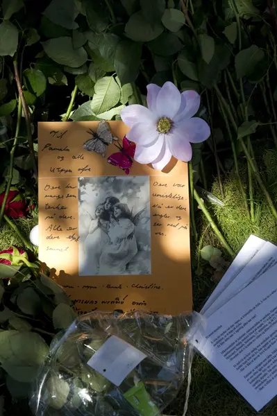Bildet er del av en serie som følger opp fotodokumentasjonen som ble gjort av Norsk Folkemuseums fotograf, Anne-Lise Reinsfelt, i etterkant av terrorhandlingene i Oslo og på Utøya 22. juli 2011. Hennes bildeserie "Sorg i det offentlige rom" viser mangfoldet av blomster, lys, dikt, bilder, gjenstander og hilsener som folk la ut i Oslos gater. Dette bildet er tatt i forbindelse med ettårsmarkeringen for disse hendelsene.