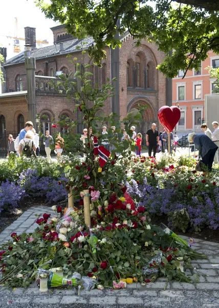 Bildet er del av en serie som følger opp fotodokumentasjonen som ble gjort av Norsk Folkemuseums fotograf, Anne-Lise Reinsfelt, i etterkant av terrorhandlingene i Oslo og på Utøya 22. juli 2011. Hennes bildeserie "Sorg i det offentlige rom" viser mangfoldet av blomster, lys, dikt, bilder, gjenstander og hilsener som folk la ut i Oslos gater. Dette bildet er tatt i forbindelse med ettårsmarkeringen for disse hendelsene.