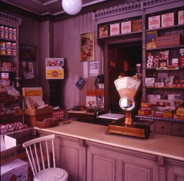 Butikkinteriør. Johan N. Nordlies kolonialforretning, Vibes gate 13, Oslo, fotografert i 1968 før ny eier overtok. Butikken ble innredet i ca. 1900, kjøpt av Nordlie i 1921 og solgt til Johan Skarpholt i 1968. Det meste av inventaret ble kjøpt av Norsk Folkemuseum i 1968.
