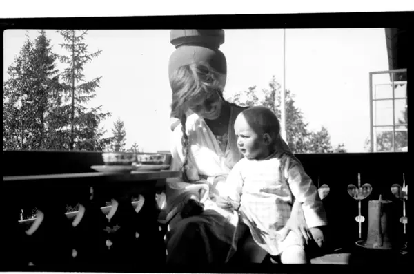 Hilda Sundt og hennes sønn Julius sitter på verandaen på Villa Knyggen. Fotografert 1918-1919.